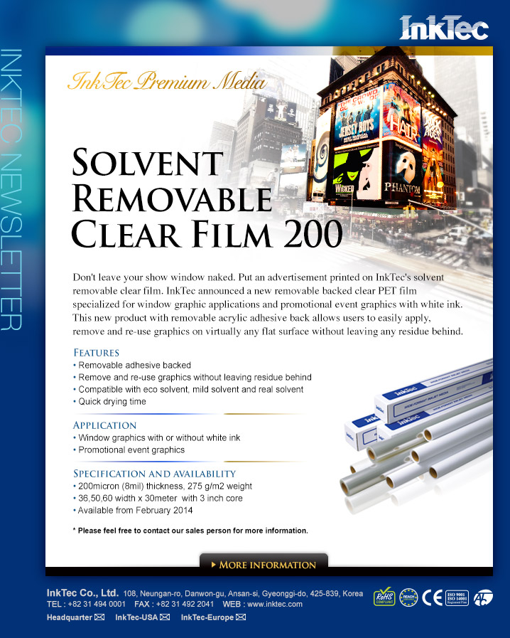 Tin Tức InkTecPremium Media “Solvent Removable Clear Film” Đăng vào 21 Tháng 9, 202521 Tháng 9, 2025 bởi mrtodesigner@gmail.com Đánh giá Premium Media “Solvent Satin Textured Polyester Film”